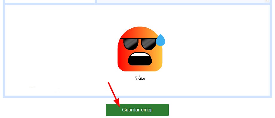 بعد إنشاء الإيموجي بإمكانك تحميله إلى جهازك بصيغة png وبدون خلفية وذلك بالنقر على زر التحميل (السهم).