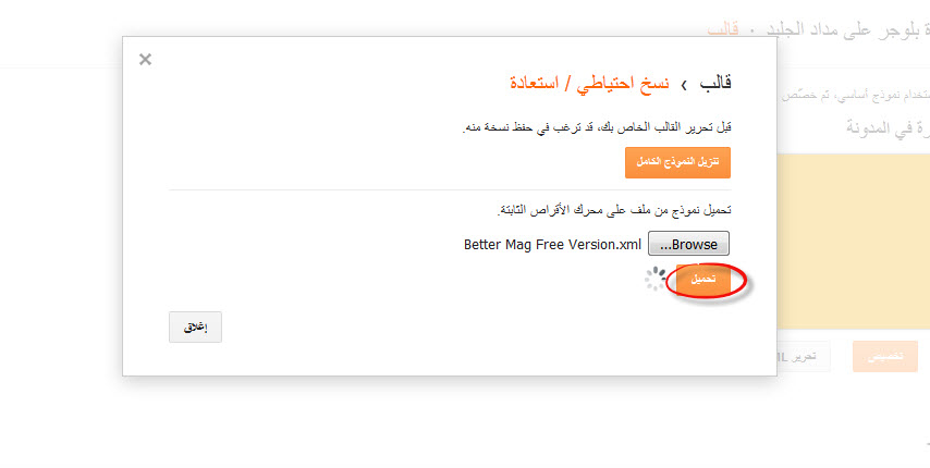 الان دعنا نريكم طريقة تركيب قالب لمدونة بلوجر بعد تحميله بصيغة XML من أحد