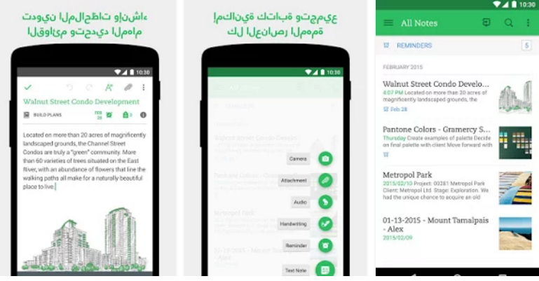 يدعم تدوين الملاحظات بجميع الأشكال: نصوص، رسومات، تسجيلات صوتية، صور، مقاطع فيديو وغيرها.