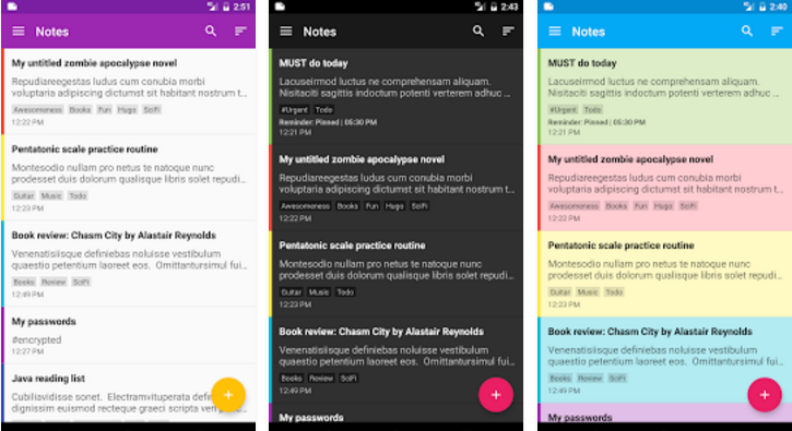 .مجموعة تذكير للملاحظات.كثيرا ما تستخدم دبوس الملاحظات على شريط الحالة وبسرعة الوصول إليها من منطقة الإعلام.تلقي النصوص المشتركة من التطبيقات الأخرى.إضافة ملاحظات جديدة مباشرة من منطقة الإعلام.إضافة إزالة المفضلة.فرز الملاحظات التي تم إنشاؤها / التاريخ المعدلة، حسب الترتيب الأبجدي أو اللون.يشير المزامنة عبر الأجهزة التي تستخدم دروببوإكس، و Google Drive أو التخزين الاحتياطي.شبه شفافة الشاشة الرئيسية القطعة.اضافة ملاحظة جديدة” اختصار القطعة.اختيار اللون الأساسي ولهجة للموضوع.بحث النص.دفعة حذف الملاحظات.احتياطية السيارات.تذكير للملاحظات دبس.المرجعية