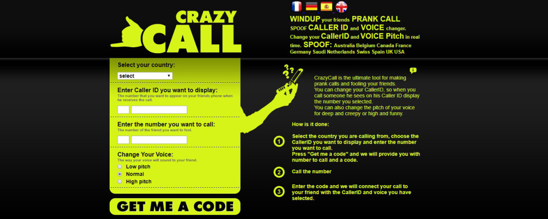 تقتصر خدمة Crazy Call على المكالمات الخادعة ، وهي متوفرة فقط لمناطق معينة من العالم. ميزة Crazy Call هي أنها تعمل أيضًا في Android و iOS. كان هذا الأسلوب الأكثر شهرة وانتشارًا في التاريخ ، كما ذكر الخبراء في أمان شبكة المؤسسات.