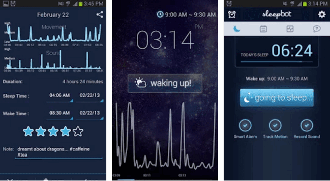 المنبه. ومع ذلك، فإنه يأتي أيضا مع ميزات تتبع النوم. ويتميز بمجموعة متنوعة من أجهزة الإنذار. والفكرة هي لمساعدة الناس الذين لديهم صعوبة الاستيقاظ من خلال منحهم مجموعة من طرق مختلفة لمحاولة. انها سوف توفر الوقت الذي تذهب إلى السرير والاستيقاظ كل صباح. فإنه حتى تحليل نوعية نومك وكذلك كمية. انهم ليسوا ما كنت أفكر عندما يتعلق الأمر تطبيقات تعقب النوم.