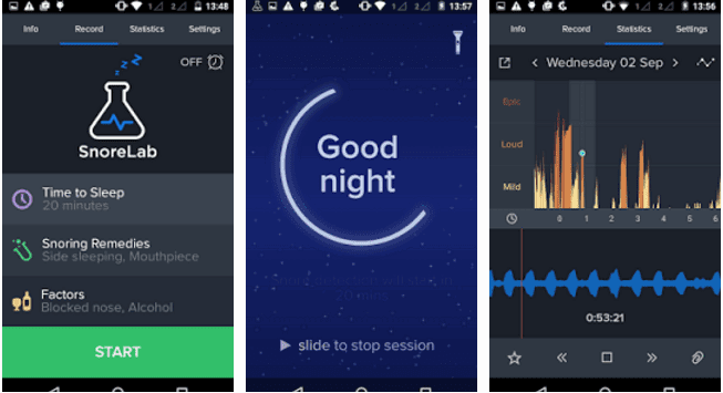 سجلات SnoreLab والتدابير والمسارات الشخير ويساعدك على اكتشاف طرق فعالة للحد منه. ببساطة وضع SnoreLab تشغيل حين تنام لتسجيل الشخير ولقياس درجة الشخير الخاص بك. معرفة ما إذا كان الشخير الخاص بك هو سيئة كما يقول شريك حياتك هو!