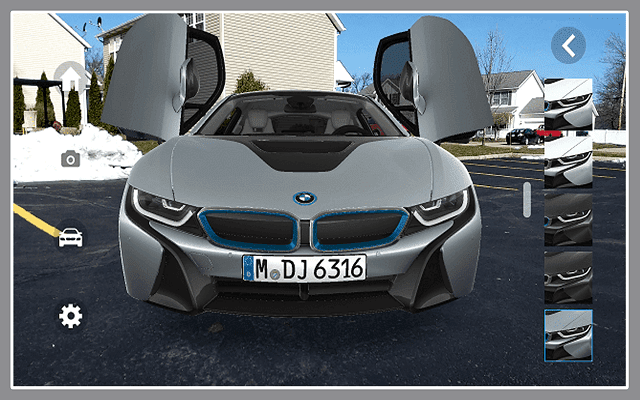 يتيح لك هذا التطبيق إمكانية استكشاف ثلاثة موديلات مثالية من سياراتBMW وهي i3 و i3s و i8 طبعاً كحجم للحياة والتصور التفاعلي والتخصيص في الواقع المعزز (AR). كما أنه يمكنك القيام في تغيير التصميمات الداخلية والألوان والعجلات الخارجية بلمسة واحد من خلال الشاشة كما أنه يمكنك فتح الأبواب والدخول إلى السيارة أو تشغيل الأضواء والإذاعة وغيرها الكثير. حيث أنه بمجرد اكتمال التصور الخاص بك ، يمكنك حفظ البيانات والصور ومشاركتها مع الآخرين كما أن هذا التطبيق متوفر بشكل مجاني على متجر جوجل بلاي.
