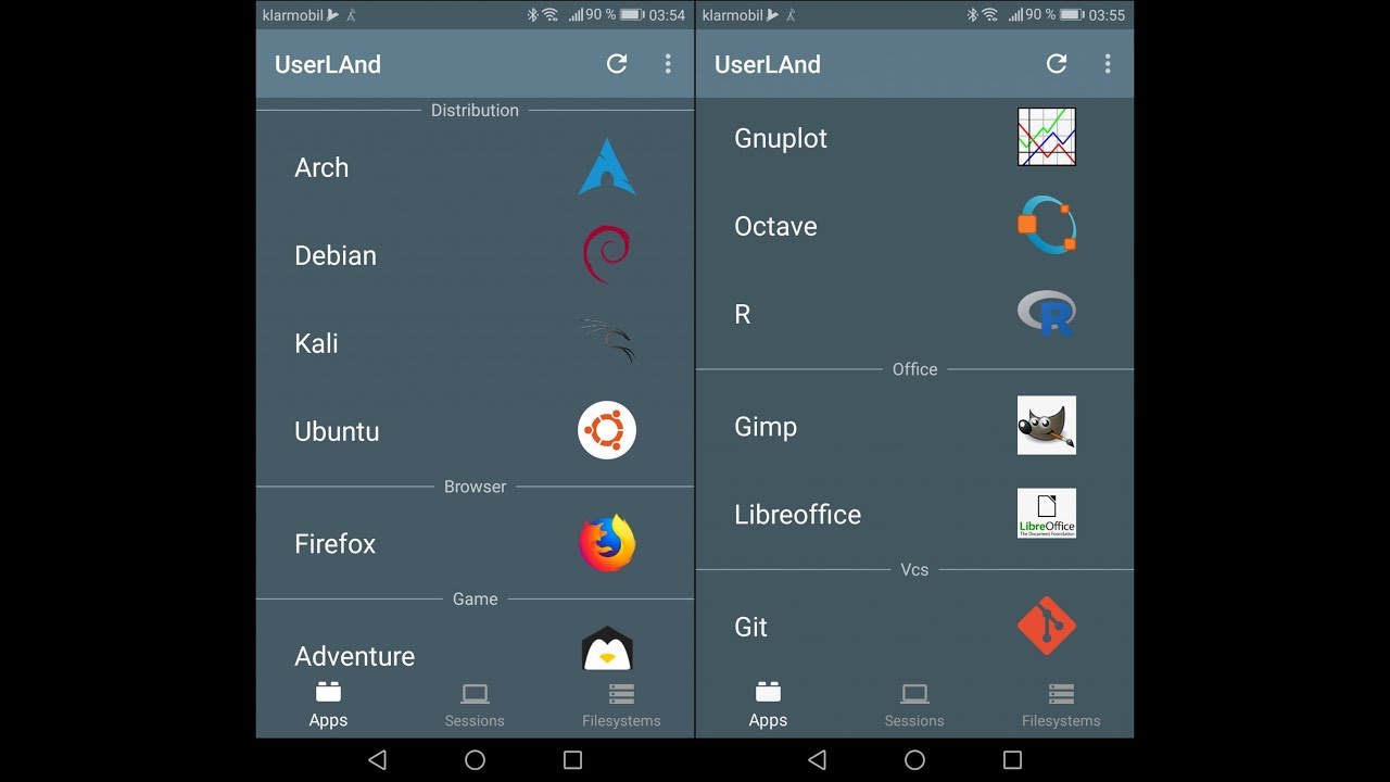 يعتبرالمنافس الرئيسي ل Termux. يقدم مشروع OpenL UserLAnd الحل لتشغيل Linux في Android من البساطة والعملية. لماذا؟ لأنه على الرغم من أنه يسمح لنا بتثبيت سطر أوامر ، إلا أن هدفه هو تثبيت توزيعات Linux الكاملة على هاتف أندرويد المحمول الخاص بنا ، مثل Debian و Ubuntu و Kali ، إلخ…