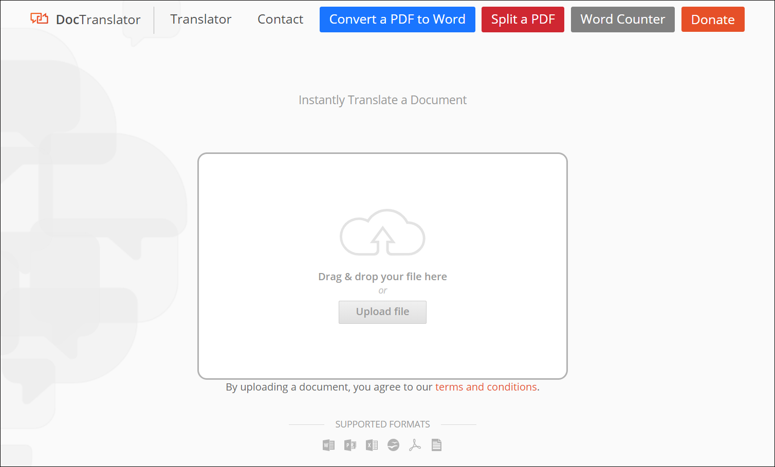 على الفور ، سوف يأخذك إلى شاشة حيث سيُطلب منك رفع المستند المعني. تدعم الأداة PDF و DOC و DOCX و RTF و TXT وغيرها من الأشكال. بمجرد رفع الملف ، ستكون خدمة الترجمة من غوغل قادرة على اكتشاف اللغة تلقائيًا وتعيين اللغة التي تريد ترجمته بها.