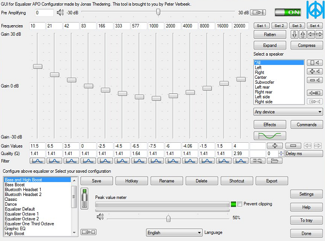 إنه أقوى معادل صوت مجاني وقابل للتخصيص ومميز تمامًا و تتضمن أفضل ميزات Equalizer APO عددًا غير محدود من الفلاتر ، واستخدام متعدد القنوات ، ودعم الصوت المحيطي ثلاثي الأبعاد ، واستخدام وحدة المعالجة المركزية منخفض جدًا يمكنك أيضًا إنشاء ملفات تعريف متعددة (ربما لمكبرات الصوت الخارجية وسماعات الرأس) والتبديل بينها بسرعة.