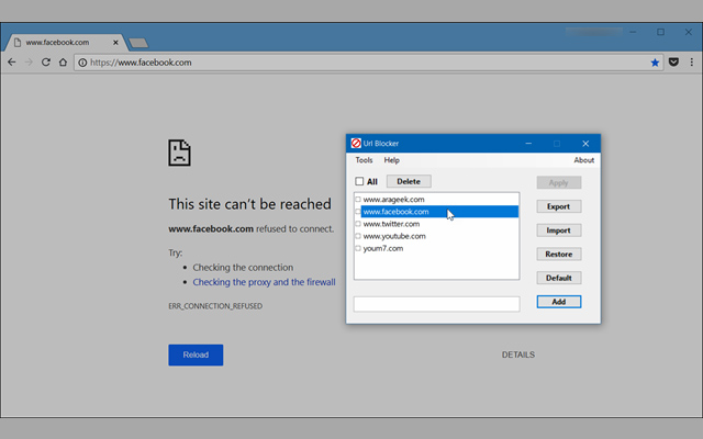 هذا البرنامج بسيط وسهل جدا وتستطيع أن تلاحظ هذا عندما تقوم بالنظر إليه في المرة الأولي لواجهة المستخدم الخاصة به، وعلى الرغم من ذلك فهو يقوم بوظيفة مهمة جدا وهي حظر المواقع فإذا كنت تردد على بعض المواقع بشكل إدماني وترغب في التخلص منها أو توجد مواقع لا ترغب في تصفحها على حاسوبك مثل المواقع الإباحية، فهذا البرنامج سوف يقوم بمساعدتك على هذا بكل سهولة فكل ما عليك هو كتابة رابط الموقع في الحقل الذي يوجد بالأسفل ثم قم بالضغط على زر Add من أجل إضافته ويمكنك إضافة الكثير من المواقع التي لا حصر لها في القائمة وبعد ذلك قم بالضغط على زر Apply لكي يتم حظر هذه المواقع على حاسوبك، وإذا أردت أن تتراجع ذلك يمكنك الضغط على زر Restore لإلغاء الحظر.