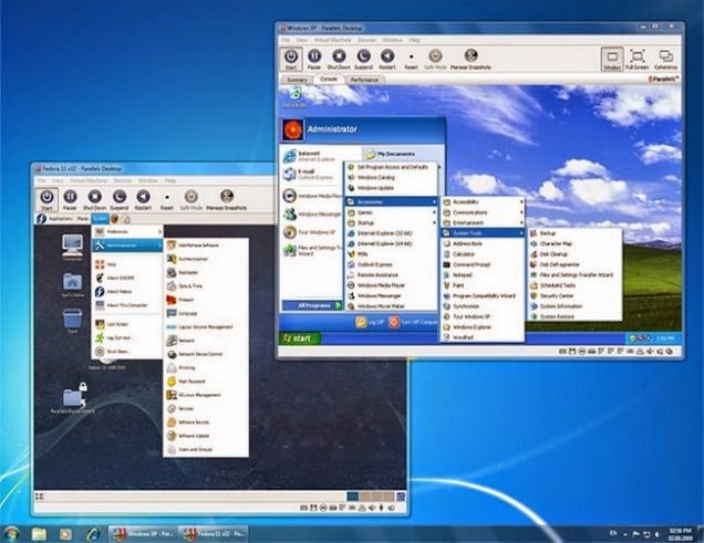 وكما تلاحظ في الصورة هناك نظامين وهميين (لينكس وويندوز XP ) يعملان في نفس الوقت داخل ويندوز 7 .
