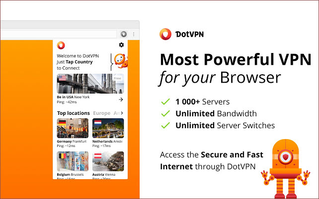 DotVPN هو إضافة VPN أخرى قوية، ومن بين مميزاتها نجد النطاق الترددي الغير محدود، أكثر من 30 موقع افتراضي للإتصال به، بالإضافة إلى مفاتيح غير محدودة بين المواقع.