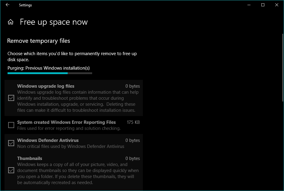 من المهم ملاحظة هنا أن بيانات تثبيت Windows السابقة المستخدمة من قبل Windows لتنفيذ عملية الاستعادة (حتى بضعة أيام) في حالة عدم رغبتك في التحديث الجديد. لذا ، سيؤدي حذف تلك البيانات إلى تعطيل هذه الميزة. هذا هو السبب في أنه من المستحسن المضي قدما بحذر.