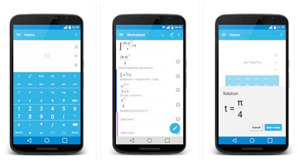 من افضل التطبيقات كذلك الموجودة في جوجل بلاي ، خلافا لباقي التطبيقات الاخرى ، هذا التطبيق يمكنك من كتابة اي تعبير رياضي عليه وسيقوم بتحويله الى عملية حسابية وسيقدم لك الناتج مع طريقة الوصول الى الحل . سيكون مفيد جدا اذا كان لديك جهاز لوحي .