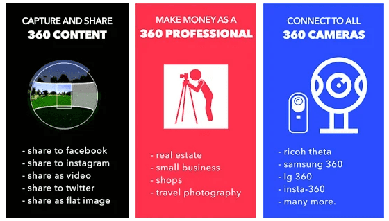 هو تطبيق مميز للكاميرا بنطاق 360 درجة، لكنه يتطلب منك شراء الكاميرا الفعلية فهو أداة ممتازة لتسجيل صورة بزاوية 360 درجة والتقاطها.