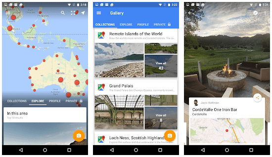 تطبيق Cardboard Camera من صنع شركة غوغل سيساعدك هذا التطبيق في التقاط تلك الرحلات المذهلة التي قمت بها أثناء عطلتك في صور مقتبسة بزاوية بزاوية 360 درجة وبتقنية VR بمساعدة تطبيق كاميرا Cardboard ، يمكنك بسهولة التقاط صور بزاوية 360 درجة و مباشرة إلى الكاميرا. لا يحتاج هذا التطبيق إلى شراء أي كاميرا لتشغيلها.