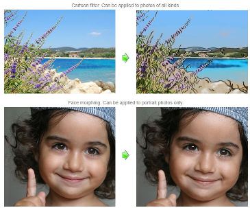 يستطيع الموقع عمل مورفينغ للصور كما انه يمكن تحويل جميع الصور حتى صور الطبيعة الى صور كارتونية جميلة .