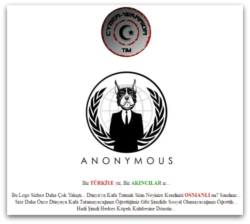 وقد تم تغيير الصفحة الرئيسية لموقع (AnonPlus) بصورة كلب يرتدي بذلة مدنية بشكل ساخر للشعار الأصلي لمجموعة المجهول مع وضع رسالة باللغة التركية والانجليزية مفادها التالي: