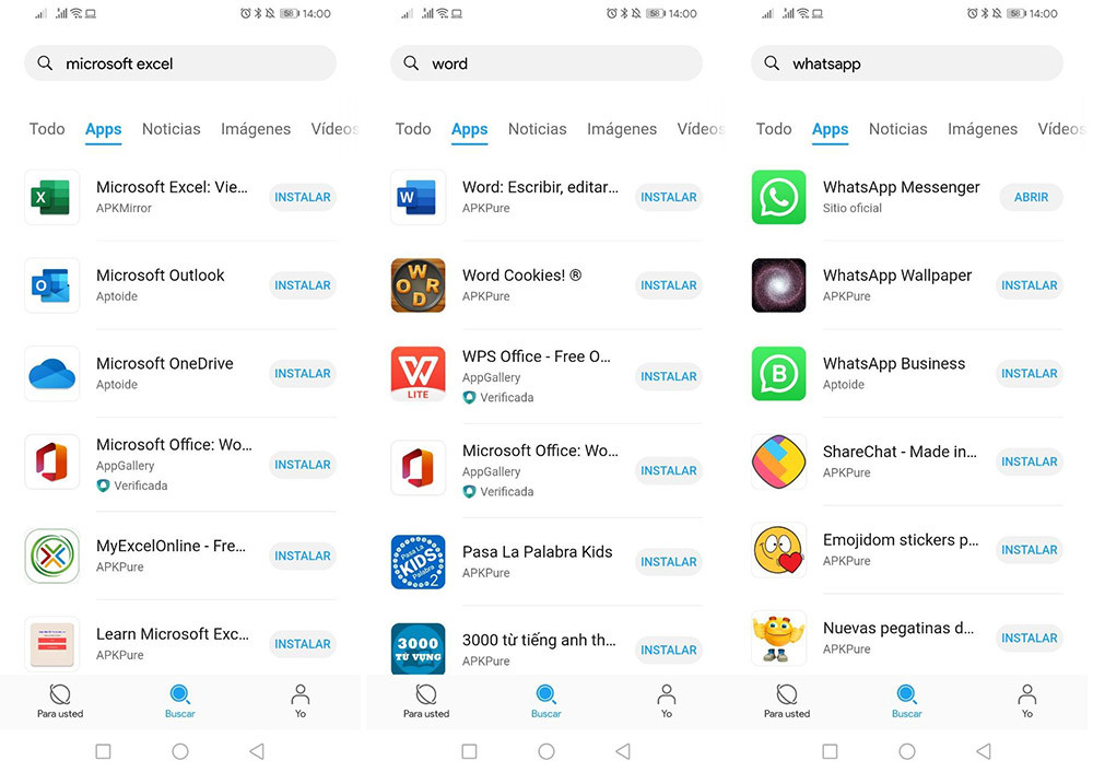 عادةً ما نحتاج إلى مُثبت خارجي ، ولكن بفضل آخر تحديث لـ Petal Search ، لن يكون ضروريًا بعد الآن. عندما نجري بحثًا ستجد النتيجة هي تطببيقات XAPK ، حيث مكننا تثبيتها مباشرة.