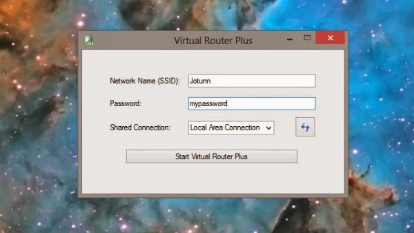فقط قم باختيار اسم الشبكة ، مع كلمة المرور واختيار مصدر الانترنت من القائمة المنسدلة ،وبنقرة واحدة فقط سيتم تحويل حاسوبك إلى روتر افتراضي لمشاركة الانترنت والملفات مع باقي الأجهزة .وخلافا للبرامج السابقة،VirtualRouter Plus لا يعرض معلومات حول المستخدمين المتصلين.