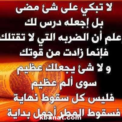 | لاتبكي على شيئ مضى. بل إجعله درس لك. علم أن الضربه أعلم أن الضربة التي لاتقتلك. فإنما زادت من قوتك. ولا شيئ يجعلك عظيم سوى ألم عظيم . فلي كل سقوط نهاية . فسقوط المطر أجمل بداية! |