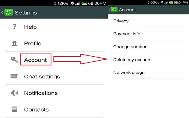 إزالة تثبيت الواتساب على الهاتف لا يعني حذفه بشكل نهائي ، وعليه إذا كنت ترغب بحذفه فعليك الذهاب إلى الخيارات options والضغط على الإعدادات settings ، ثم إلى الحساب account والضغط على حذف حسابي Delete my account ثم قم بإدخال رقم هاتفك، وسيتم إلغاء حسابك كليا وبشكل نهائي .