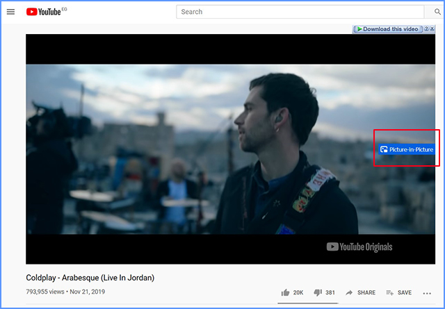 Picture in Picture بالتأكيد ميزة رائعة إذا كنت تود متابعة أحد مقاطع الفيديو أثناء العمل أو متابعة مواقع أخري أو حتي إستخدام تطبيق آخر علي حاسوبك حيث سيُمكنك تشغيل مقطع الفيديو ومتابعته في نافذة عائمة داخل أي تبويب أخر أو نافذة آخري