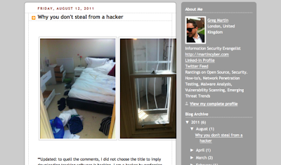 ويصف غريغ مارتن كيفية السرقة وكيفية الحصول على المعلومات على مدونته الشخصية كيف انه رصد اللص المشتبه يتصفح الانترنت، واستطاع الحصول على هويته من فيسبوك،وقال ان المعلومات تضمنت اسم الرجل، والمدرسة، وعنوان في غرب لندن ومعلومات عن الإنترنت اللاسلكية له.