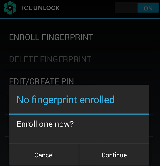 تم إختر ICE UNLOCK وانقرعلى always . بعد ذلك ستظهر رسالة اخرى No figngerprint