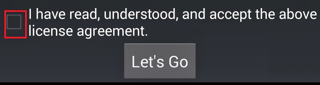 يكفي بعد تتبيث التطبيق سيعرض عليك اولا قبول شروط الخدمة علم على i have read ,understood and accept the above license agreement تم انقر على let’s go .