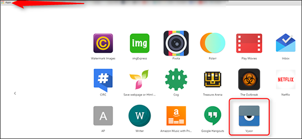 واختيار البرنامج ثم نقوم بفتح التطبيق من المسار chrome://apps