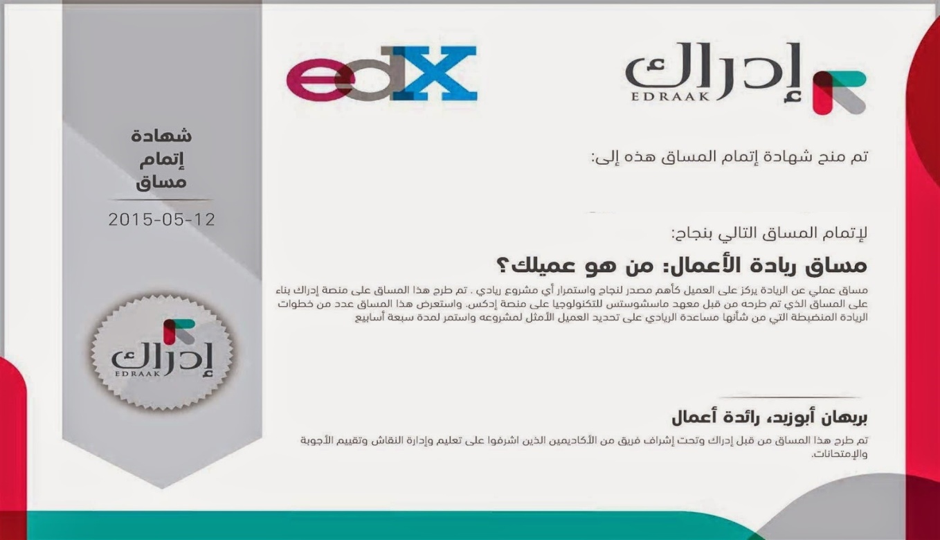 الحصول على شهادة الإكمال بالمجان .2–منصة إدراك للتعليم المفتوح