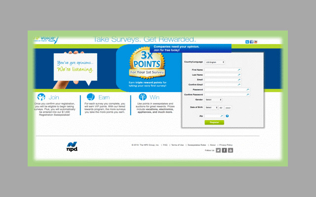 هذا الموقع هو موقع استطلاعات حيث يتم مكافئتك بالنقاط من خلال تحويلها إلى أموال أو بطاقات هدايا أو من خلال الحصول على فرصة فوز بقضاء عطلة مميزة وهدايا أخرى، يوجد بالموقع الكثير من الجوائز والعروض اليومية وطريقة العمل في الموقع هي ربح نقاط مقابل مسابقات اليانصيب والمزادات وتستطيع التقدم في المستويات لكي تصل إلى أكبر جائزة.