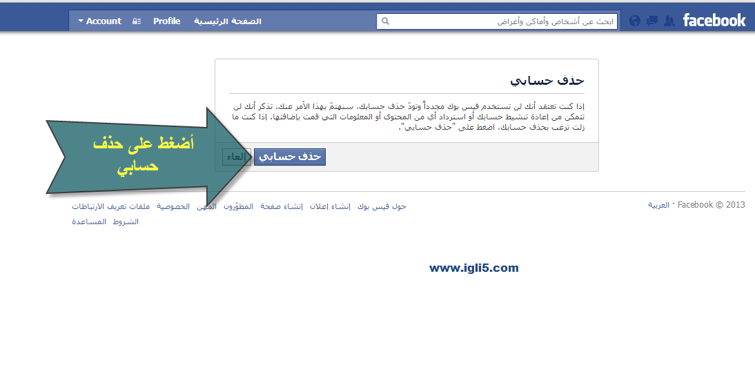 وضعنا نموذج بسيط عن الفيسبوك ، ونفس الطريقة تقوم بها على أي موقع أنت مشترك فيه وتريد مسح حسابك عليه ، عبر هذا الموقع المتميز فعلا والذي قد يغنيك عن البحث الطويل .