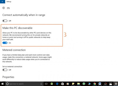 تأكد من تمكين اكتشاف الكمبيوتر للشبكات الخاصة فقط وليس لشبكات واي-في العامة.