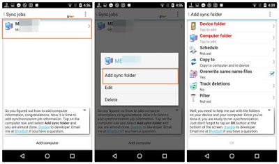 بعد إضافة جهاز كمبيوتر، الآن لمزامنة البيانات أو المجلدات بين أندرويد و بيسي، اتبع الخطوات التالية: