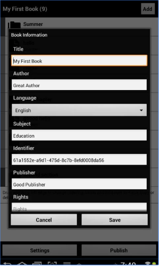 هذا التطبيق قوي و مرن بحيث يمكنك من بناء المحتوى الخاص بك بطريقة فعالة حيث يمكنك من إنشاء عدة فصول التي تحتاجها يمكنك تضمين اختياريا عدة فصول في مجموعة واحدة بمجرد ما يتم إنشاء الفصل يمكنك إضافة المزيد من العناصر من أنواع مختلفة مثل :النص: العنوان، الفقرات وأيضا كود HTML الميديا: الصور ،الفيديوهات ، صوتيات ،موسيقى؛ أو ملفاتtxt, PDF, .doc, .xls, .ppt : جميع الملفات المتوفرة في Dropbox, ،Google Drive كما أنه يمكنك أخذ جميع الملفات المذكورة أعلاه من كتاب آخر موجود في التطبيق .