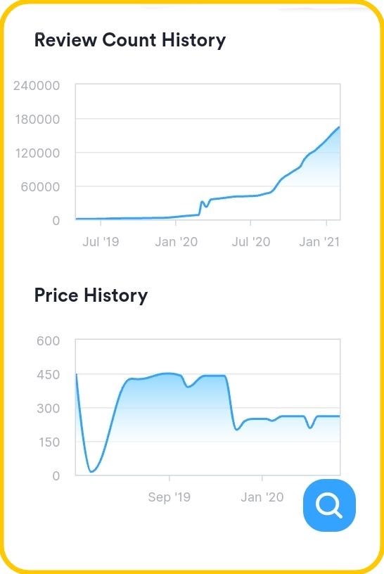التطبيق يعرض أيضا المبيان التوضيحي الخاص بإدخال التقييمات و التغييرات التي طرأت على ثمن المنتوج بعد المدة