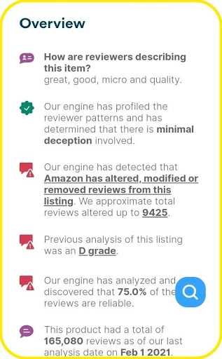 لحسن الحظ ، هناك خدمة fakespot ، وهي خدمة لتحليل موثوقية المراجعات على المتاجر عبر الإنترنت ، وتستخدم خوارزميات ذكاء اصطناعي متقدمة للتخلص من المراجعات المزيفة ، وتحدد بسرعة موثوقية المراجعات للمنتجات أم لا ، خاصة تلك التي تتمتع بها عدد من الممارسات التي يجب إضافتها إلى عدد أكثر يجب على كل عميل القيام بذلك عند وصوله إلى مرحلة الشراء للتحقق من جودة المنتج ، خاصة في قسم المراجعات ، بما في ذلك التحقق من الصور الشخصية لأصحاب التصنيفات ، حيث يتواجد الأشخاص الذين يقدمون تقييمًا وهميًا غالبًا لا يضعون صورهم الحقيقية ، بل صور حيوانات وشخصيات معروفة ،