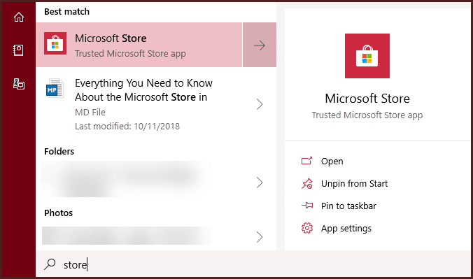 يوجد متجر ميكروسوفت مع ويندوز 10 بشكل افتراضي لذا لا داعي لتحميله من مكان آخر، كل ما عليك سوى فتح القائمة الإفتتاحية – Start Menu – والبحث عن كلمة متجر –  store – للعثور على تطبيق متجر ميكروسوفت.