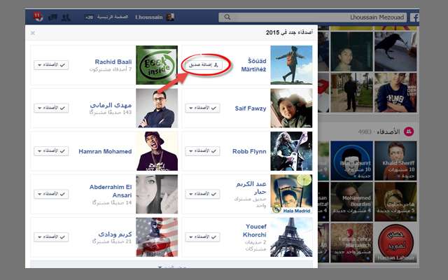 بعد الضغط عليها ستفتح معك نافذة بها جميع الأصدقاء الذين أضفتهم في السنة التي اخترتها ، وإذا وجدت أي شخص أمامه إضافة صديق فهذا يعني أنه حذفك