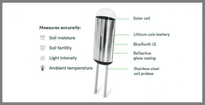 ويستطيع هذا المستشعر الجديد معرفة جميع الحاجيات الخاصة بالنباتات وذلك عبر قياس مجموعة من العوامل الحيوية مثل رطوبة التربة، تغدية التربة، درجة الحرارة، شدة الضوء التي تحتاجها النباتات، وكل هذه الأشياء يمكنك التوصل بها عن بعد وفي هاتفك الأندرويد وذلك عبر خاصية البلوثوث الموجودة في هذا المستشعر.