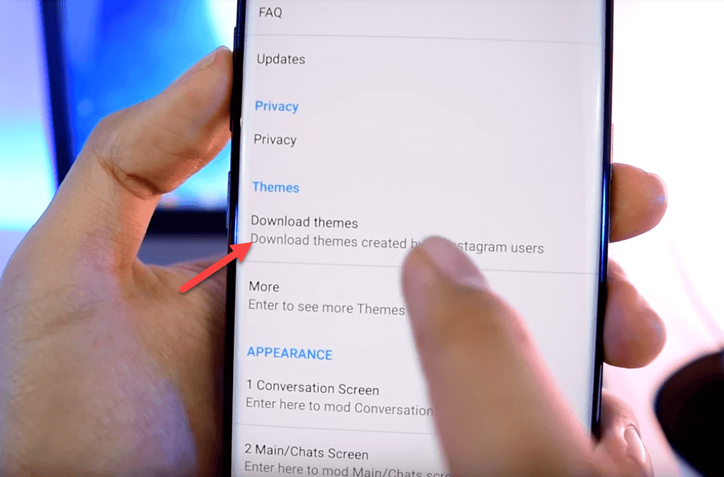 بعد تثبت التطبيق عليك الضغط على العجلتين في التطبيق أعلى حسابك وستختار download themes