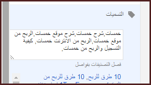 اهتم بوضع تسميات ملخصة للموضوع فهي مهمة جدا في الارشفة مثلا يتحدث موضوعك عن شرح موقع خمسات . فهكذا ستكون التسميات او قريبة منها: