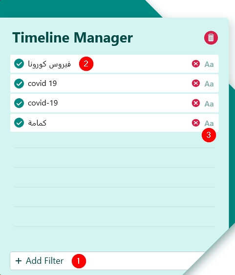 برنامج Timeline Manager مجاني للويندوز تستطيع من خلاله عمل فلترة للشريط الزمني في فيسبوك لإخفاء الأخبار المزعجة والتي تضيع وقتك بلا فائدة فهو يقوم بالبحث عن الكلمات التي تحددها في اسم الصفحة أو اسم الحساب وفي نص المنشور والتعليقات وكذلك داخل الصور وفي الروابط وإذا وجد البرنامج تلك الكلمة في أي من تلك العناصر فسوف يقوم بفلترتها عن طريق طي المنشور وإخفاؤه في الشريط الزمني في حسابك على فيسبوك.