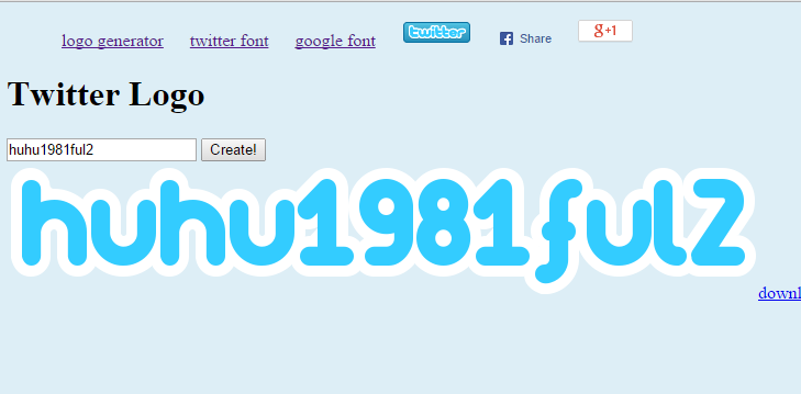 بعد الدخول تعمل على الضغط على شعار غوغل أو تويتر ، ثم سيعطيك المكان الذي عليك كتابة فيه إسمك ، ثم في الأخير إضغط على create لتحصل على الشعار وتحميله بالضغط على download أسفله.