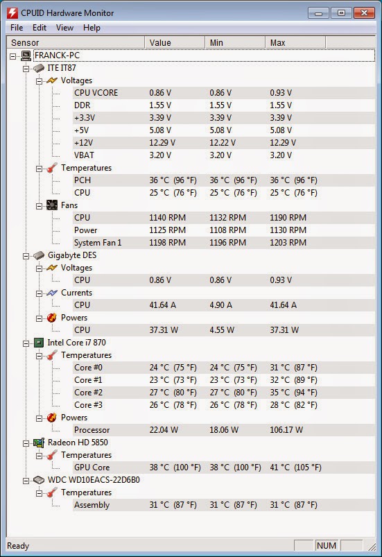 برنامج رهيب و مجاني متوفر لنواتي 64 و 32 بيت، يطلعك بالإضافة لدرجات الحرارة، على شدة التيار المار في القطع و الجهد و الحد الأدنى و الأقصى لهذه القيم.