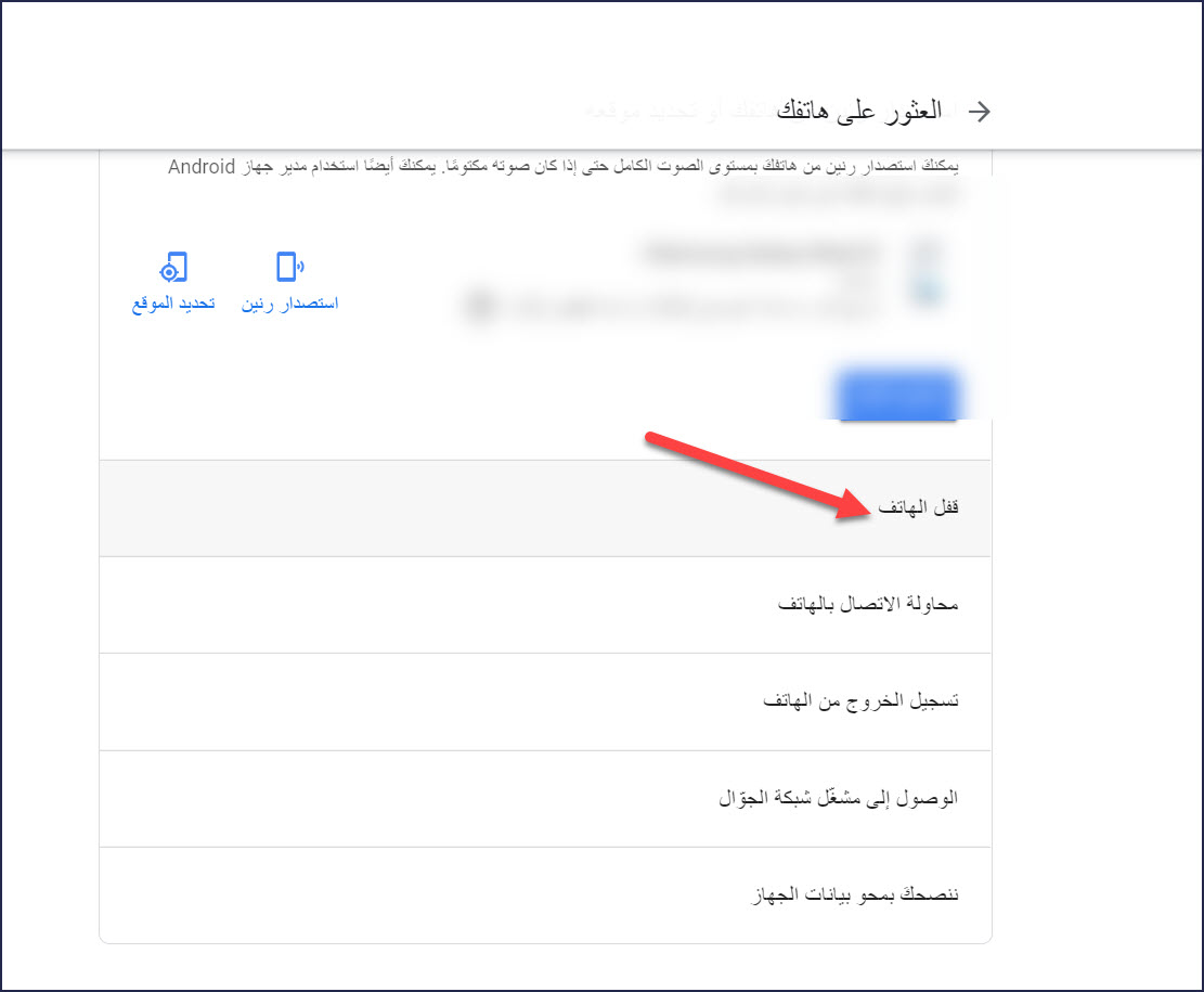 أولاً ، اتبع هذا الرابط الذي سينقلك إلى منطقة “Find my device ” وأول شيء ستراه هو الخيارات لجعله يرن وتحديد موقعه على الخريطة. ومع ذلك ، عند التمرير لأسفل ، ستجد سلسلة أخرى من البدائل ك “قفل هاتفك”.