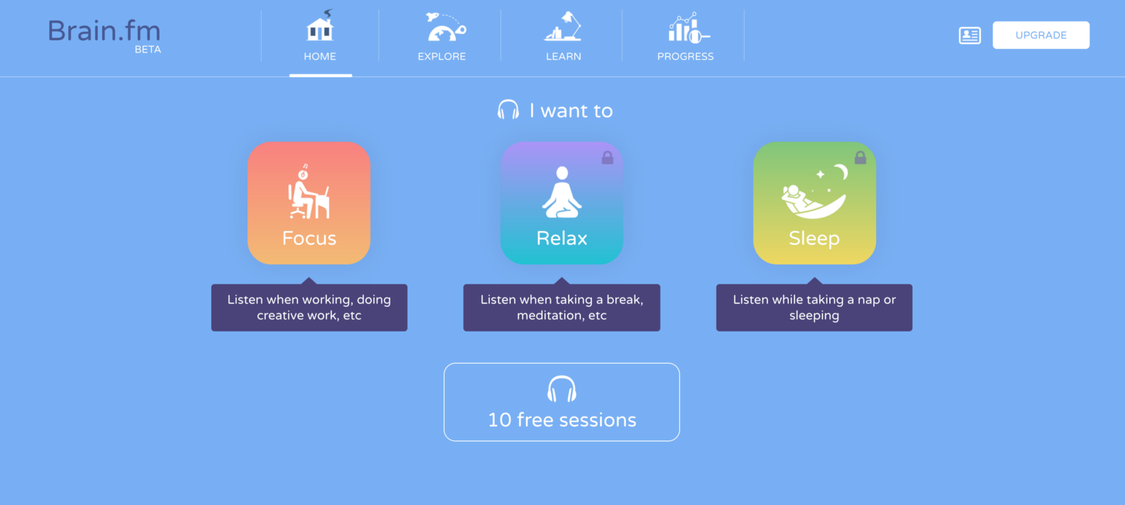 هذا التطبيق يمتاز بكونه يقدم ثلاث انماط النوم , الاسترخاء , التركيز بعد اختيارك لما تود يشرع في تشغيل موسيقى هادئة تساعدك على حسب ما قمت باختياره.