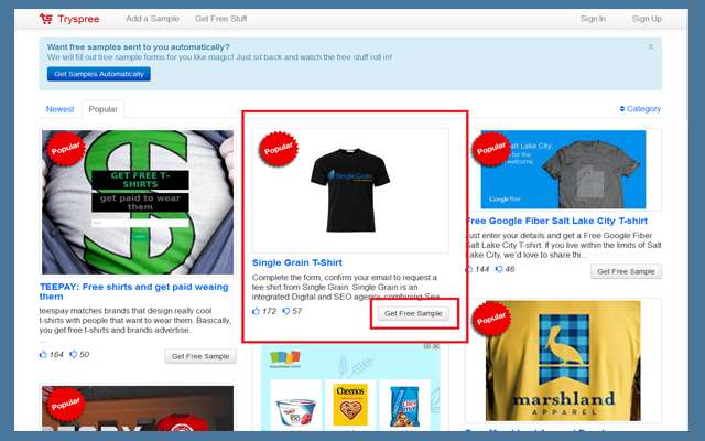 للتوضيح سنحاول الحصول على القميص و سنضغط على Get Free Sample كما هو موضح في الصورة :