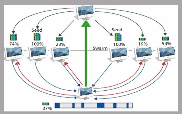 قيامك بتحميل اجزاء من الملف بوقت واحد يساعد بحل مشكلة عامة عن طريق طريقة peer-to-peer: