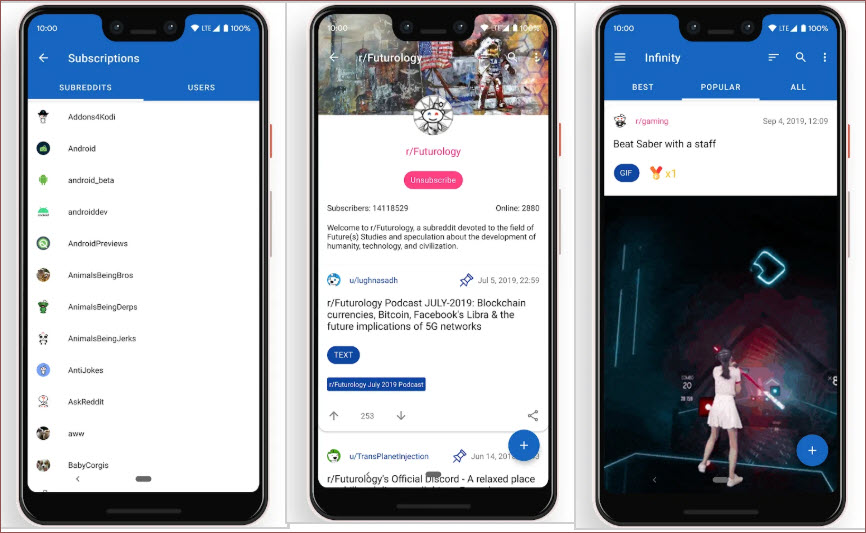 Infinity for Reddit هو تطبيق Reddit جديد مجاني تمامًا وبدون إعلانات ، مع واجهة متأنية تستند إلى تقنية Material Theme ، والتي تشمل وظائف متنوعة ، ودعم العديد من الحسابات ، و الثمات الداكنة ، و أكثر من ذلك.